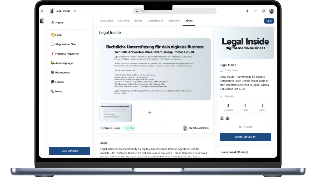 Legal Inside ist eine Community. Sie hilft digitalen Unternehmern, Agenturen, Kreativen und KI-Unternehmer dabei, Risiken früh zu erkennen, smart zu handeln und rechtlich-fundierte Entscheidungen zu treffen. Mit praxisnahen Lösungen, erprobte Vorlagen, vielen Vorteilen und direktem Zugang zu rechtlicher Expertise.